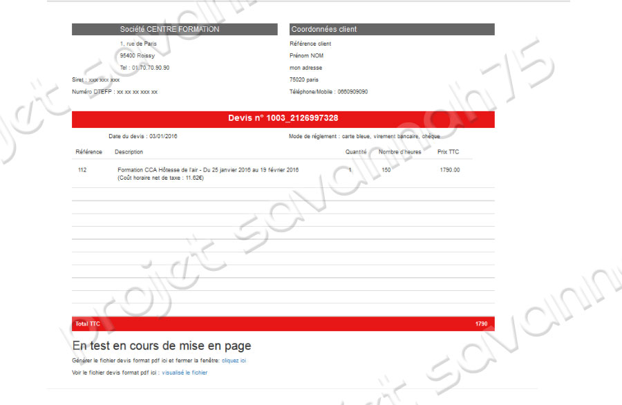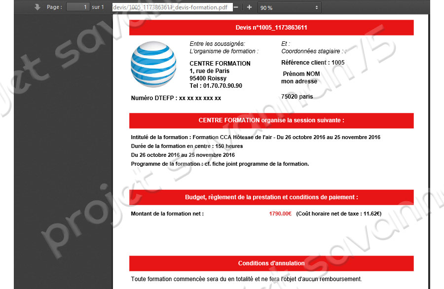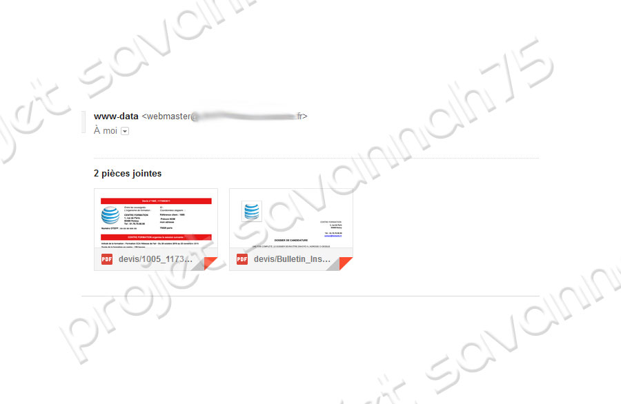 envoi par email de 2 fichiers .pdf, le devis et un dossier inscription.