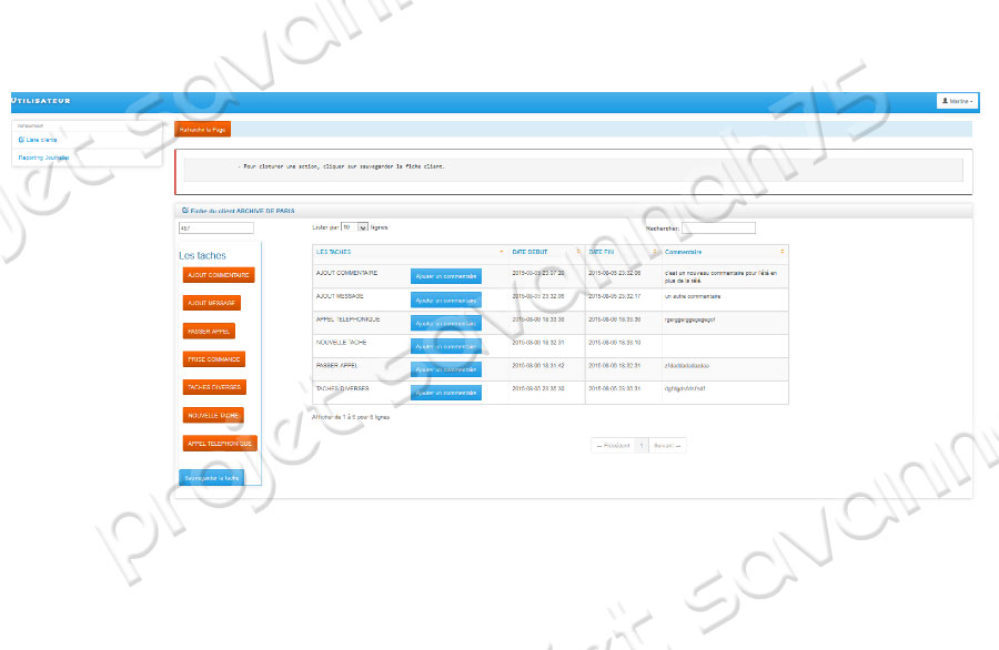 Projet de suivi de tâche effectuée et comptabilisé dans le temps avec
